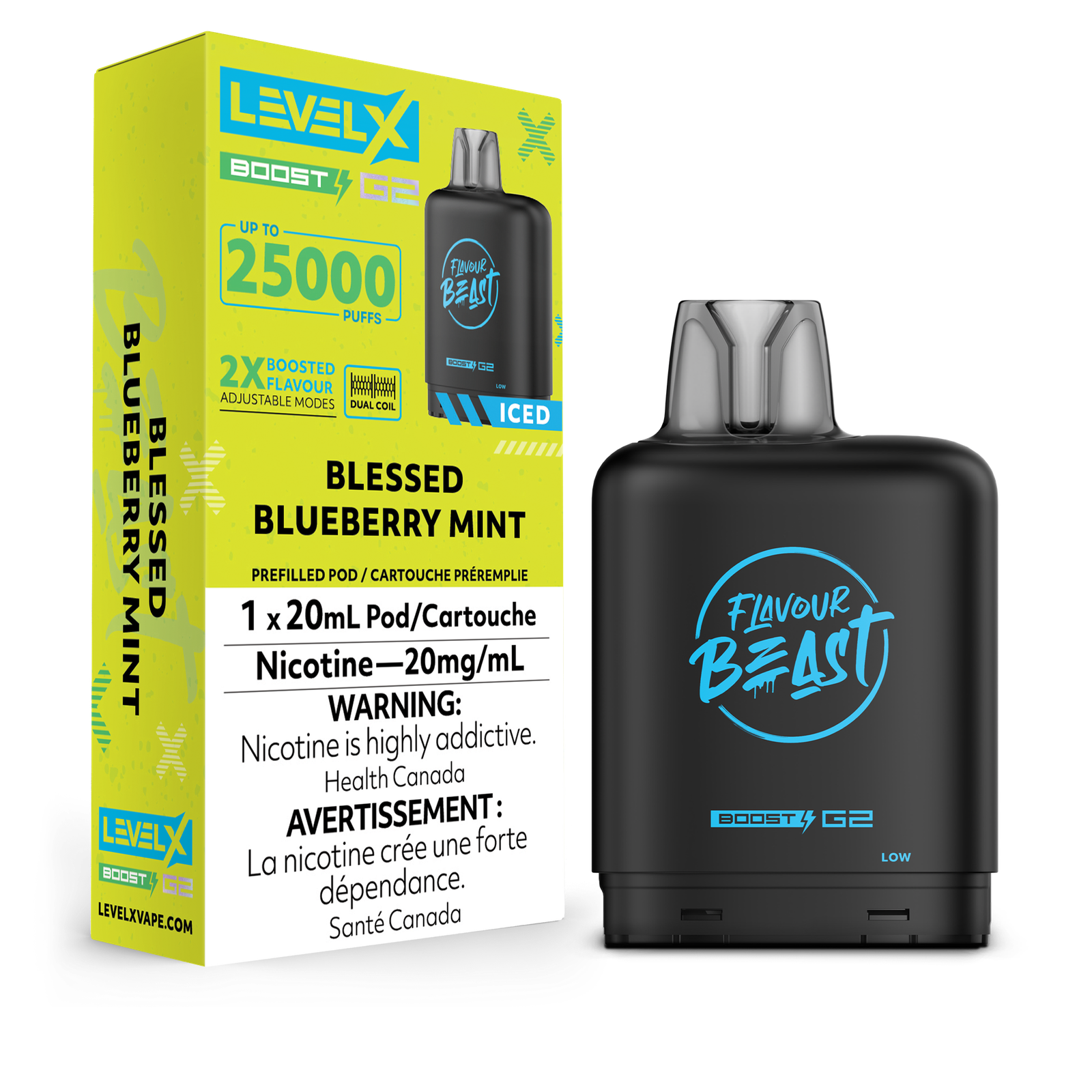 - Massive pod capacity that will last you for up to 25,000 puffs with Eco Mode ‘Eco Mode’ requires a Level X Boost G2 battery