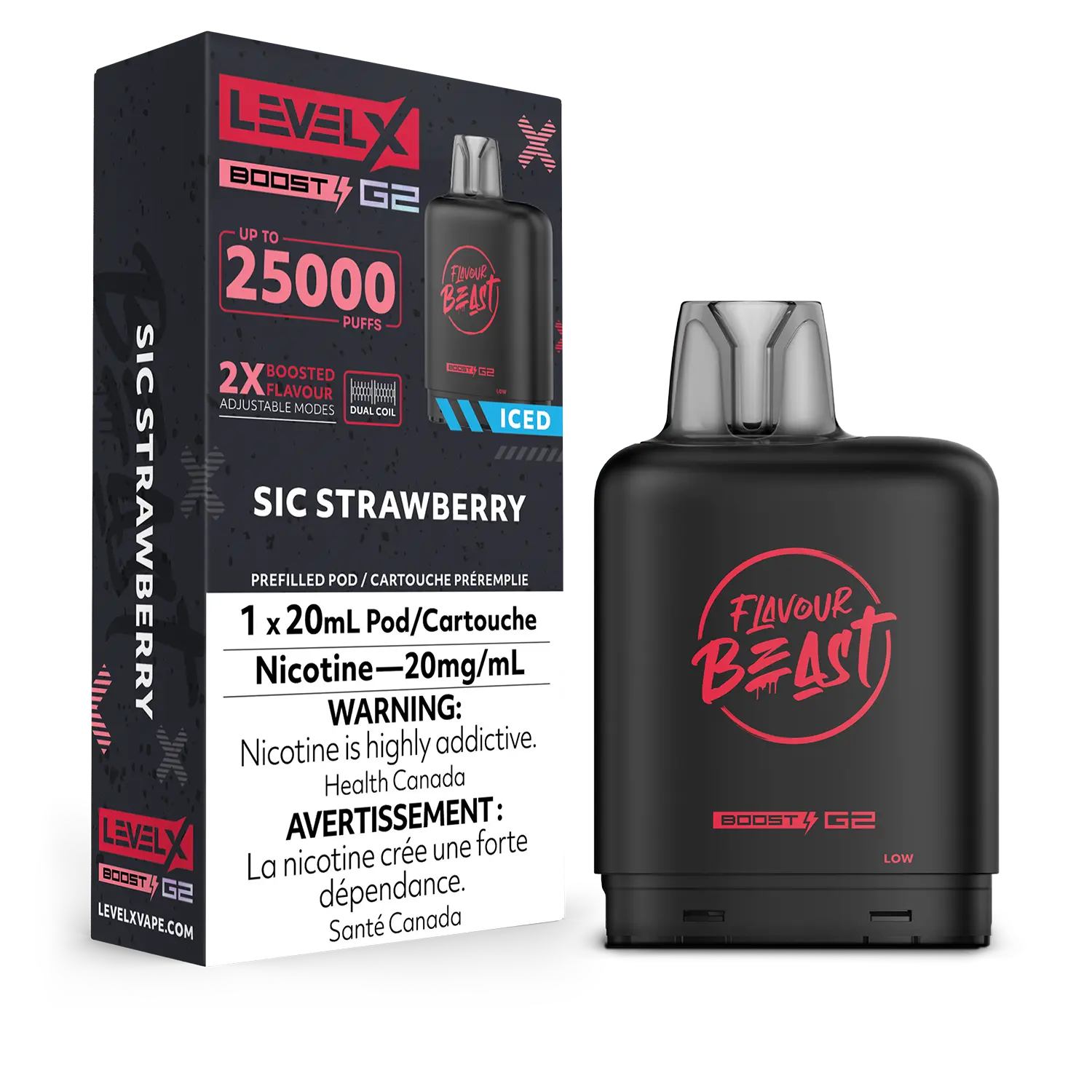 - Massive pod capacity that will last you for up to 25,000 puffs with Eco Mode ‘Eco Mode’ requires a Level X Boost G2 battery