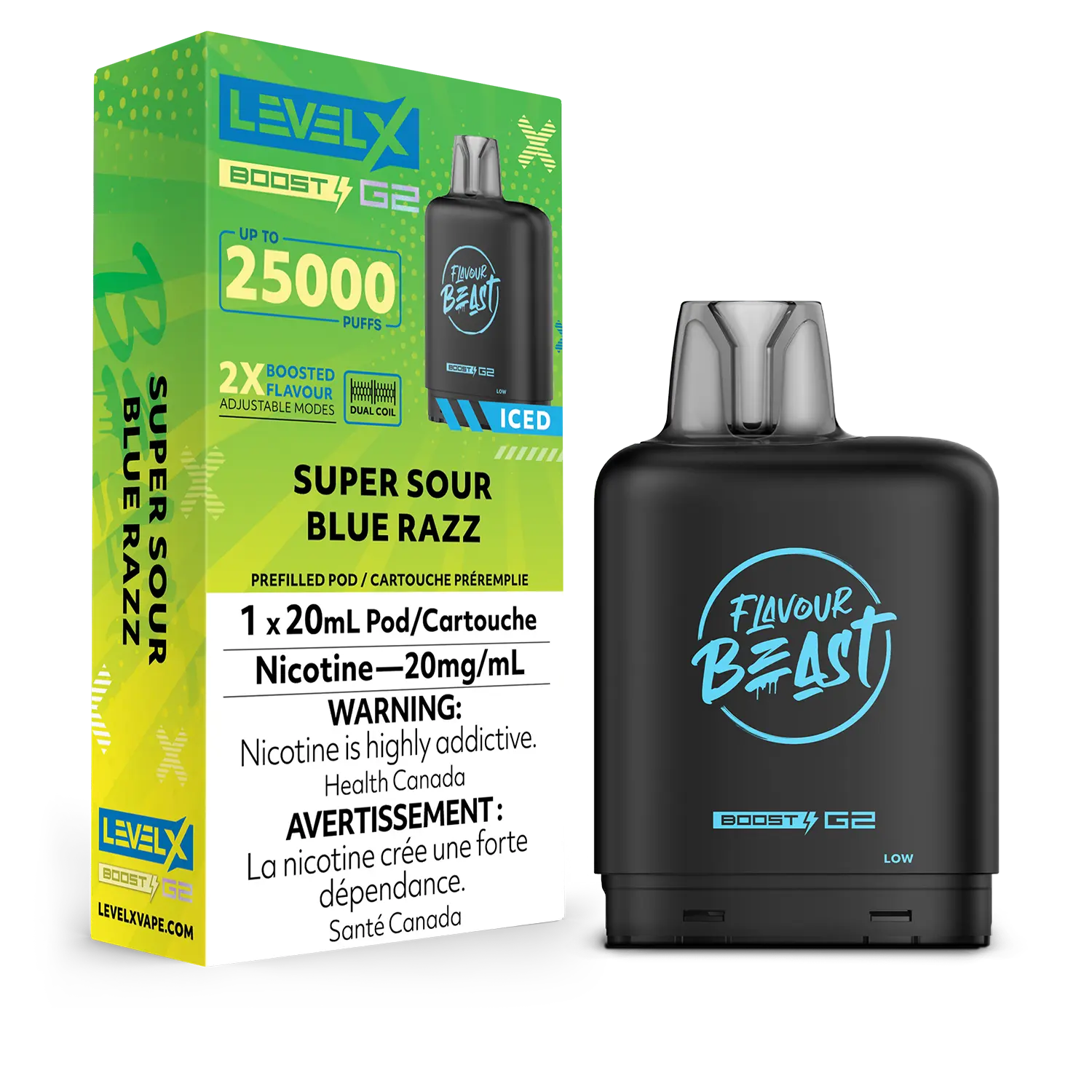 - Massive pod capacity that will last you for up to 25,000 puffs with Eco Mode ‘Eco Mode’ requires a Level X Boost G2 battery