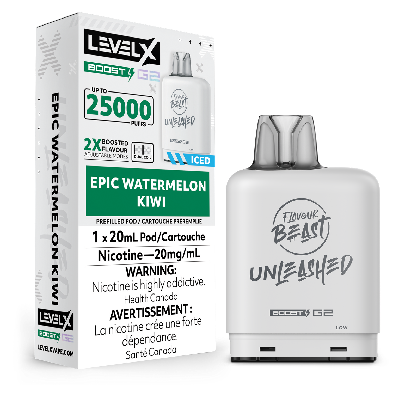 - Massive pod capacity that will last you for up to 25,000 puffs with Eco Mode ‘Eco Mode’ requires a Level X Boost G2 battery